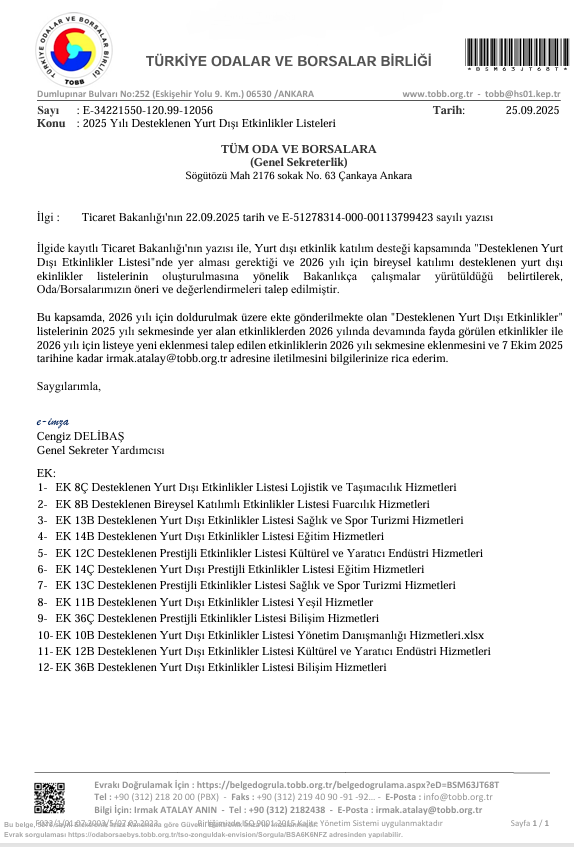 2025 Yılı Desteklenen Yurt Dışı Etkinlikler Listeleri